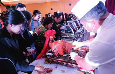 魏家大米、烤全羊、鲜米凉糕、秋木耳等扎赉特旗特产吸引不少居民品尝。 原梓峰 摄