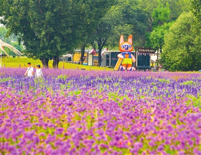 本报讯(记者 原梓峰)9月18日上午,记者来到位于永定河畔的紫谷伊甸园,目前园中的柳叶马鞭草和四季薰衣草处于盛花期,在园区中心位置绽放,打造出一片紫色的花海,其余百十种花卉将陆续在中秋国庆长假期间迎来盛花期,为市民带来“白日霓虹秀”。