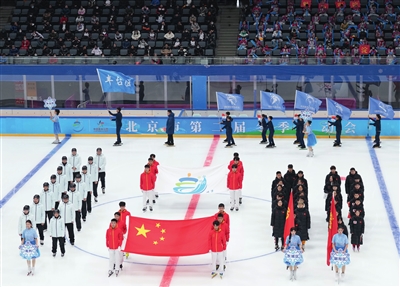 11月27日上午,伴随着会歌《让冰雪照亮梦想》,北京市第二届冬季运动会在国家体育馆开幕。丰台区共派出运动员176人,教练员、领队30人,合计206人参加群众组所有项目的争夺。 特约记者 刘平 摄