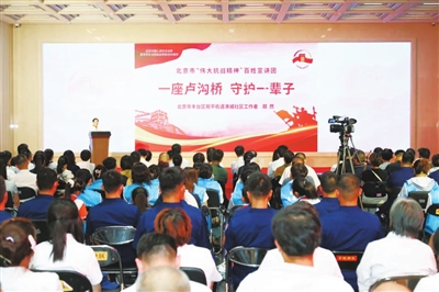 本报讯(记者 蒲长廷 原梓峰)8月11日,北京市“强国复兴有我”群众性主题宣传教育活动推进会暨“伟大抗战精神”百姓宣讲团首场报告会在中国人民抗日战争纪念馆举办。馆内序厅背景墙上“强国复兴有我”“伟大抗战精神”字样在灯光下愈发清晰。随着宣讲员的讲述,一个个故事慢慢铺陈开来,那份跨越80多年的红色力量,真切地传到了在场每个人心里。活动由北京市委宣传部、市社科院(市委讲师团)主办,中国人民抗日战争纪念馆、丰台区委宣传部承办,来自首都各界的干部群众代表约200人共赴这场“精神之约”,传承弘扬伟大抗战精神,凝聚爱国奋进力量。