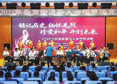 本报讯(通讯员 赵湘雯)8月15日,为纪念中国人民抗日战争暨世界反法西斯战争胜利80周年,云岗街道在首都师范大学附属云岗中学礼堂举办2025年“铭记历史·缅怀先烈·珍爱和平·开创未来”千人合唱节决赛,来自社区、村的8支优秀合唱团队齐聚一堂,以激昂歌声抒发爱国情怀,展现新时代云岗人的精神风貌。航天三院、航天十一院、航天六院一〇一所、航天医科七三一医院、京丰燃气发电有限责任公司与近500名观众共同参与。