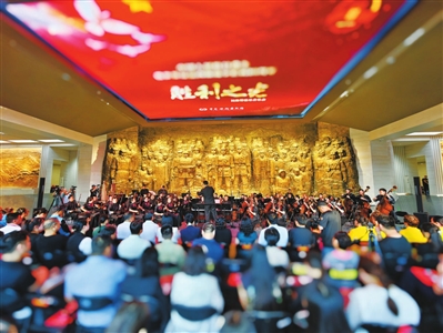 8月18日下午,为纪念中国人民抗日战争暨世界反法西斯战争胜利80周年,中国歌剧舞剧院民族管弦乐音乐会《胜利之光》在位于丰台区卢沟桥畔的中国人民抗日战争纪念馆开展北京市首场演出。丰台区社区群众代表、志愿者代表、文明引导员等观众齐聚一堂,在聆听经典旋律的同时,近距离感受历史的厚重,通过音乐回望峥嵘岁月,感悟伟大抗战精神的时代回响。 文/原梓峰 袁阳 摄/原梓峰 (详见06—07版)