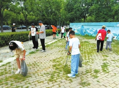 青塔街道秀园社区的青少年们重点针对居民楼前后、背街小巷等卫生死角,对堆积的塑料袋、纸盒等生活垃圾进行集中清理;看丹街道白盆窑天兴家园社区组织各组家庭以“1名成人+1名孩子”的模式分工协作,从花坛边缘到步道角落,原本散落的杂物被一一清理;马家堡街道组织退休居民志愿者和青少年志愿者一同参与清洁活动,一老一少,教学相长;右安门街道西铁营社区组织11名社区青少年及6名家长对凉水河步道进行了“地毯式”清理;北宫镇张郭庄社区组织亲子家庭在中华名枣园开展清洁活动;成寿寺街道成仪路社区的小志愿者们在成寿廊小公园,对塑料袋、饮料瓶、废纸屑等垃圾进行集中清理……