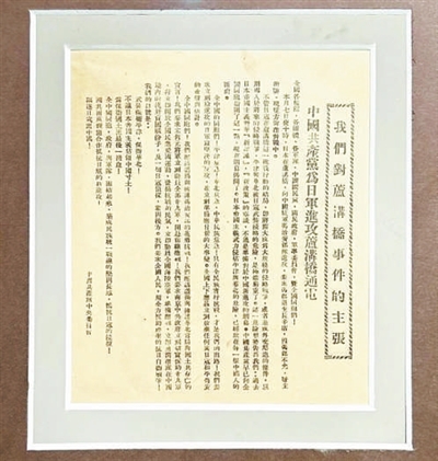 当卢沟桥畔的枪声划破夜空,我带着使命降临。日军借演习寻衅、炮轰宛平,中华民族到了最危急的时刻。“武装保卫平津,保卫华北!不让日本帝国主义占领中国寸土!”1937年7月8日,在日本发动卢沟桥事变的第二天,中共中央号召全国人民、军队和政府团结起来,共同抵抗日本侵略者,同时向全国民众表明了中国共产党抗战到底的决心,发出了战斗的号角。纸上的呐喊,终化作胜利的曙光。八十多年过去,我的纸页虽已泛黄,但字里行间的精神火种从未熄灭。