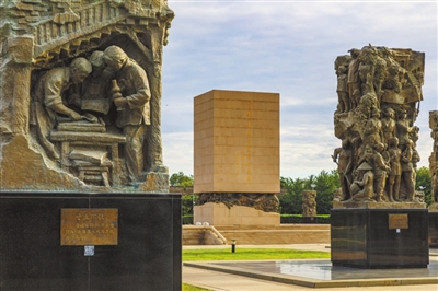 中国人民抗日战争纪念雕塑园北倚宛平城墙,西临卢沟古桥,集历史、文化、艺术和爱国主义教育于一体。雕塑园中心广场内有38尊直径2米、高约4.3米的柱形铸铜雕塑,环绕着巨大的花岗岩和压碎的侵略者战争机器残骸铸铜雕塑组成的中国人民抗日战争纪念碑。这38尊雕塑分为“日寇侵凌”“奋起救亡”“抗日烽火”“正义必胜”四个部分,以中国传统碑林形式布阵,庄严肃穆。“改造提升过程中,我们本着最小干预原则,对这38尊铸铜雕塑进行了清洗、打蜡和锈痕抛光,让它们保留了岁月的厚重感。”卢沟桥文化发展中心有关负责人介绍,为了改善游人观展体验,他们联合卢沟桥小学一起录制了雕塑讲解,扫描雕塑下方的二维码就能看到讲解视频。