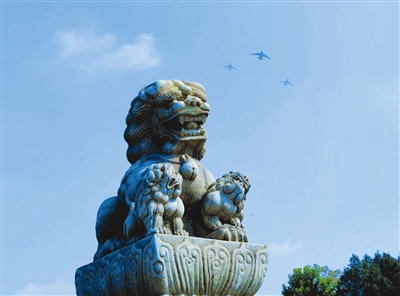北京永定河上,卢沟桥的501只石狮子,见证了中华大地从烽火连天到盛世繁华的壮阔历程。它们目睹了1937年7月7日那个夜晚,日军炮火撕裂晓月,中国全民族抗战的序幕由此拉开。今天的卢沟桥,石狮依然静静屹立,见证着中国的和平发展。石狮凝视着2025年9月3日的天空——空中梯队飞过北京上空。当年浴血奋战的土地上,早已是山河锦绣、国泰民安。它们见证了历史的沧桑巨变,也必将见证中华民族更加辉煌的明天!雄狮觉醒,盛世长宁。摄/赵智和