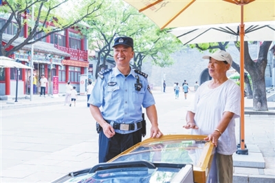 走出抗战纪念馆,两人就投入日常的社区警务工作。路上碰到辖区群众李女士,她激动地打招呼:“老丁,出来总能碰上你。多亏了你,我们家租户要办的居住证都是你主动上门帮忙办好的。”