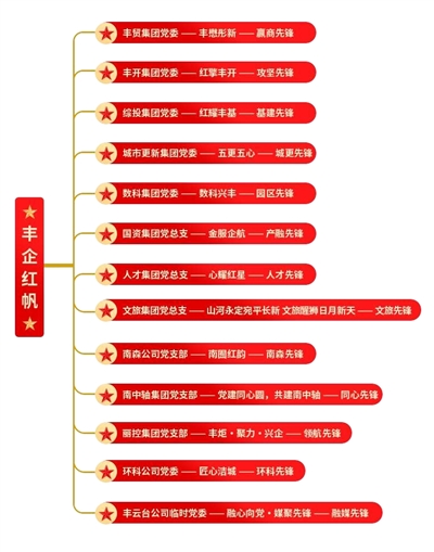 深入推动“长辛先锋”内化于心、外化于行,凝聚为共同意识、转化为共同行动,构建区国资系统“丰企红帆”“1+13+N”品牌矩阵(1个主品牌、13家区属一级企业子品牌和N个子企业特色品牌)。