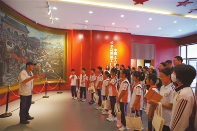 在长辛店二七纪念馆内,高校生组成的“领航组”化身革命历史“解读者”,结合展陈细节为中小学生补充讲解李大钊、邓中夏等革命先锋的事迹,以及京汉铁路工人大罢工的幕后故事。孩子们围在展柜前,对着研学卡上的问题互相讨论,不时向身边的大学生哥哥姐姐请教。跨龄互动不仅让红色故事更鲜活,更在学生们心中搭建起红色薪火传递的桥梁。