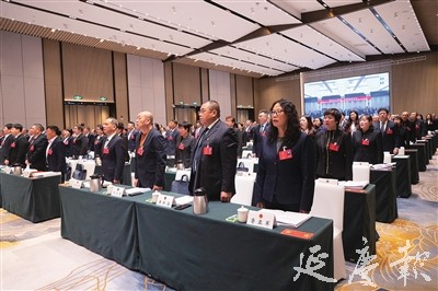 大会上,代表们精神饱满、高唱国歌 李晓鹏摄