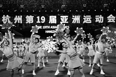 闭幕式当晚,“大莲花”造型的杭州奥体中心体育场内,童声伴随百花绽放、金桂留香,湖水涟漪的水墨画卷,时而幻化为连通古今的古桥,时而跃现成青山飞鸟的江南美景……闭幕式充满东方美学的巧思,呈现中国文化的丰富内涵。