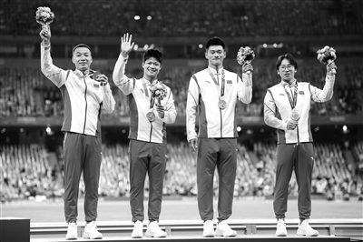 9月27日,章瑾在有望冲击个人全能冠军的情况下,三次从高低杠器械摔下,在全场的加油声中,她三次重新上杠,最后完成所有动作稳稳落地。两天后,章瑾以一枚女子自由操金牌证明了自己的实力。竞技场是残酷的,但也常常充满温情。9月24日,在游泳女子1500米自由泳决赛中,当其他选手都到达终点后,排名最后的越南选手仍在泳道全力冲刺,赢得现场观众的鼓掌。9月30日,田径男子10000米决赛中,最后一名选手在全场呐喊和鼓励声中完成比赛。赛场上只要努力了,第一名和最后一名都值得尊重和喝彩。