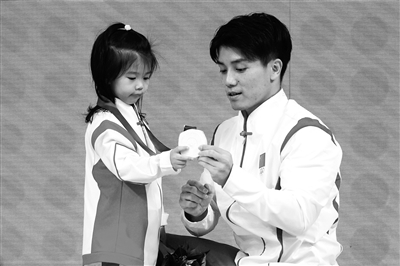 9月29日,在杭州亚运会竞技体操男子单杠决赛中,中国选手林超攀获得亚军。林超攀三岁的女儿也来到现场为他加油,并有模有样地学爸爸手指胸前的国旗。这一刻,一颗热爱与传承的种子正在发芽。