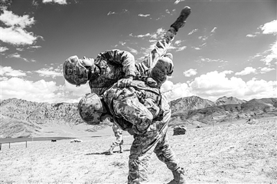 本报讯 近日,南疆军区某工兵团将部队拉到海拔4500多米的雪域高原陌生地域,通过开展攀登、索降、格斗、战斗射击等专业课目强化训练,锤炼单兵作战技能和团队协作精神,为遂行多样化任务打下坚实基础。图为该团官兵进行擒拿格斗课目训练。(李 江)