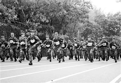 课目简介:5公里武装越野是军事体育训练岗位能力板块的重要内容,也是专项训练的难点课目。受训者需按规定着装并携带自动步枪(手枪)、挎包、水壶等装具,通过训练可以增强耐力素质,提高负重快速运动能力,同时还能培养吃苦耐劳、英勇顽强的战斗作风。