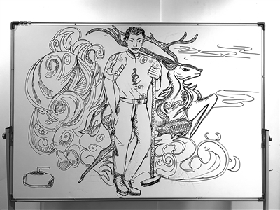 大年初五,海拉尔赛区的比赛已经开始。来自呼伦贝尔学院的“小雪团们”从1月开始已经进入备战状态。为了烘托龙年气氛,这些思维活跃的大学生们想出了各种创意,体现对春节的寄托之情。冰球冰壶馆媒体工作间对面的信息板上,两幅手绘线条画栩栩如生,霸气外溢,一幅蛟龙与冰球,一幅驯鹿与冰壶,巧妙地体现了项目特点。冰壶馆媒体经理刘姝君介绍,开赛前听说志愿者团队中有美术专业的学生,就鼓励他发挥专长,装饰了信息板,让前来工作的记者们眼前一亮。