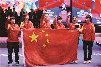 本报讯 北京时间2月24日,2024年釜山世乒赛女团决赛在中国队与日本队之间展开。由孙颖莎、陈梦、王艺迪组成的中国队苦战5局,以3比2逆转战胜日本队夺冠,第23次捧起考比伦杯。