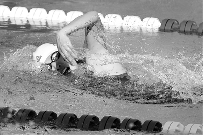 当地时间3月10日,在埃及开罗举行的2024年现代五项世界杯混合接力赛决赛中,中国组合张琳彬/钟秀婷以1280分的总成绩位列第六名。图为钟秀婷在游泳比赛中。