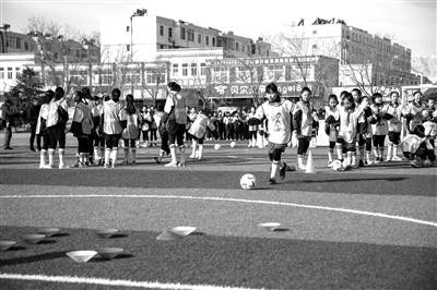 在新疆昌吉,足球闯关、射门得分王、足球保龄球、颠球比赛和8人制足球赛等项目深受姑娘们喜爱。昌吉市第十小学的六年级学生董欣霖从一年级开始踢足球,如今学习、踢球两不误。今年1月,为了在球场上踢“最飒的足球”,她把留了9年的长发剪了。“足球带给我好身体,还能锻炼意志品质。喜欢上足球后,我变得更加勇敢,也不爱哭了。在学习中遇到困难,也会努力坚持,最终都能克服,这些都是足球教会我的。”董欣霖说。