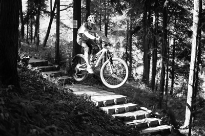 张家界位于湖南省西北部,武陵山脉腹地,因“奇峰三千、秀水八百”而闻名,是中国首批世界自然遗产地。大自然的鬼斧神工,造就了这里独特的石英砂岩峰林地貌,吸引着全球游客观光旅游,引来全球极限运动爱好者一展身手。图为极限运动爱好者在张家界堡子界林场练习自行车速降。 新华社记者 薛宇舸摄