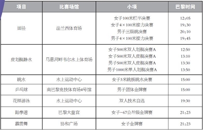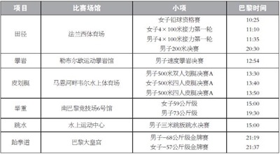 在南巴黎竞技场4号馆,乒乓球男女团半决赛举行,期待国乒男女团能够顺利进入决赛。另外在南巴黎竞技场1号馆,将进行两场女排半决赛,也期待中国女排能够站上半决赛的赛场。