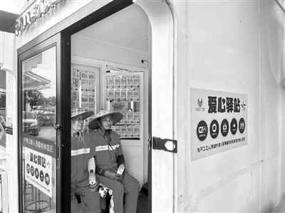位于威尼达广场附近的体彩展示体验中心还专门打造了“夏日清凉驿站”,这里不仅可以饮水、热饭,还配备了藿香正气水等防暑药品,供环卫工人们进来降温歇脚。