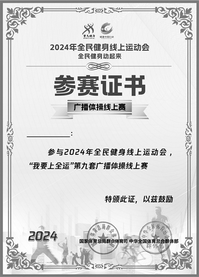 参赛选手还将获得由国家体育总局群体司、中华全国体育总会群体部颁发的参赛证书。(冯 蕾)