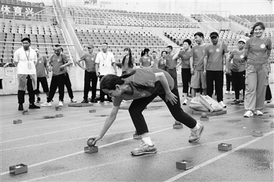 比赛中,每支队伍的10名运动员共同参加了平衡前进、手卷辘轳、屈体移球、袋鼠快跳等6个体质促进项目和砥砺前行、勇毅奋进、披荆斩棘等4个趣味项目的测试。