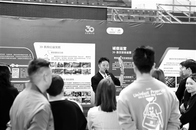 在“国球两进”公益行新疆站活动现场,主持人向观众介绍公益体彩。 本报记者 王世让摄