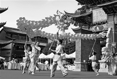 近日,在云南省昆明市举办的第二届传统体育国际交流大赛舞龙舞狮比赛落下帷幕。广州体育学院龙狮队在传统舞龙项目中比赛,最终他们获得该项目金奖。 新华社记者 陈欣波摄