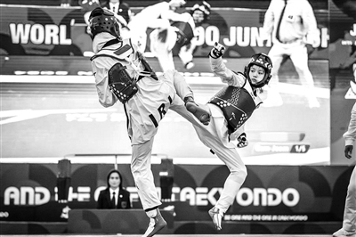 今年国庆节期间,杨熙若在韩国举行的世界青年跆拳道锦标赛中先后战胜了来自澳大利亚、乌克兰、乌兹别克斯坦和印度等代表队的选手,一路闯入决赛。虽然最终屈居亚军,但收获沉甸甸世青赛银牌的她,实现了从业余道馆走向国际赛场的目标,同时也开拓了视野,积累了大赛经验。“参加国际比赛让我从世界选手们的身上学习到了很多。比如有的选手前腿进攻出色,有的选手比赛节奏快且控制得好。这些经验让我变得更加成熟和冷静。”