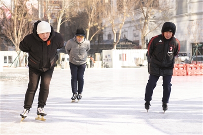 2025年第九届亚冬会日益临近,哈尔滨市的冰雪运动氛围日渐浓厚。市民、游客纷纷走进滑冰场,尽享滑冰运动的乐趣。图为人们在哈尔滨市南岗区一处公益冰场滑冰。