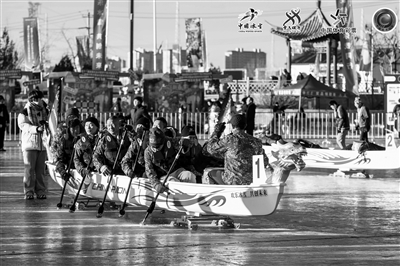 龙舟竞渡,鼓点激昂,在银装素裹的冬日,“体彩新春季”活动为冰雪赛事增彩。1月12日,一场独具特色的2025中国银川冰上龙舟邀请赛在宁夏银川市阅海滑雪场举行。本次邀请赛由银川市人民政府主办,宁夏体育产业发展服务中心、银川市体育局、银川市民族事务委员会等共同承办,吸引全国各地的23支队伍参赛。
