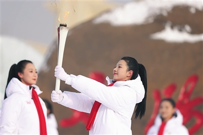 1月20日,哈尔滨2025年第九届亚洲冬季运动会火种采集仪式在哈尔滨太阳岛风景区举行。图为采火使者正在展示圣火。