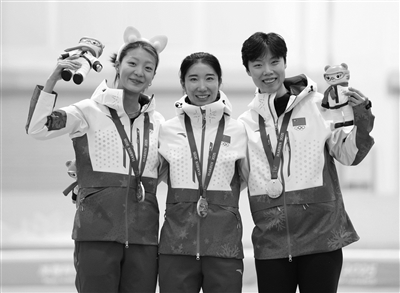 《义勇军进行曲》奏响,三名中国女将齐聚领奖台,成为2月8日哈尔滨亚冬会速度滑冰赛场的绝美风景。