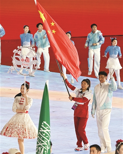 中国体育代表团旗手徐梦桃在闭幕式上。新华社记者 李一博摄
