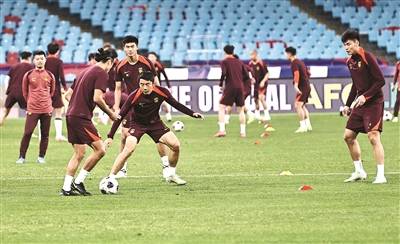 2026美加墨世界杯亚洲区预选赛18强赛C组第八轮中国队对阵澳大利亚队的比赛将于3月25日在杭州奥体中心举行。图为3月24日,中国队在赛前训练中。 本报记者 王宪民摄