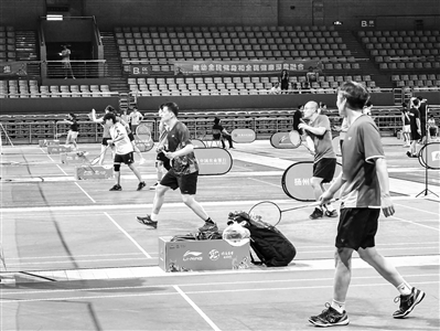 据我了解,不少羽毛球运动员来自江浙地区,扬州的群众羽毛球氛围之浓烈,是我始料未及的。羽毛球比赛地点在扬州体育公园的体育馆内,可能是憋着一场大雨,开赛当天的室外气温闷热异常,导致室内场馆也酷暑难耐。我在场馆内只是走走停停,汗都浸湿了衣服,那些在场下热身的选手已经汗如雨下,更别提正在场上比赛的,中途还要换一件干爽的衣服。