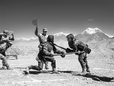 近日,陆军某团在雪域高原组织开展基础课目大比武,围绕20余个课目展开激烈角逐,激发官兵血性胆气,为部队执行高原作战任务打下基础。图为官兵进行刺杀对抗比赛。 陈继亮摄影报道