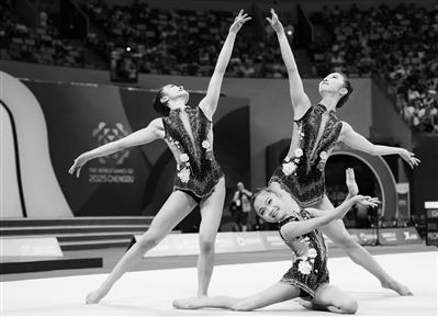 17岁的顾荃佳一看就是队里被照顾的小妹妹,“我们付出了很多努力,这枚金牌对我们来说分量很重。”作为队里的“上面人”,也是“小尖子”,她需要在队友的支撑下完成倒立、腾跃等高难度动作,“不会担心,因为有两个姐姐保护我!”顾荃佳笑嘻嘻地说。