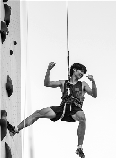 成都世运会上攀岩项目中国队不断刷新纪录,斩获傲人战绩,中国攀岩队让所有人见识了“中国速度”。中国攀岩队教练钟齐鑫说,也许你并非是专业的攀岩者,但在面对生活的挑战、面对健康的追求时,每一个人都有一座属于自己的岩壁,每一次的坚持、每一点的进步都是向上攀登,让我们无数次从失败中站起来,让每一寸肌肉都充满着健康的力量。