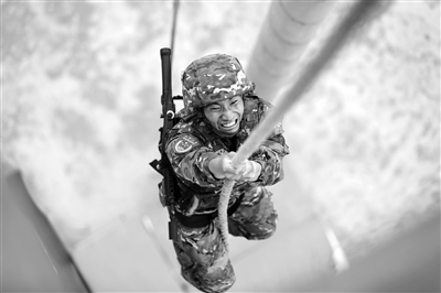 近日,武警第一机动总队某支队抓住夏季训练黄金期,紧贴任务实际,组织侦察分队围绕战斗体能、攀登、射击、索降等课目展开专攻精练,进一步锤炼侦察队员过硬战斗作风,磨砺军人血性,全面提高侦察分队的综合实战能力。图为侦察分队队员进行18米抓绳上训练。