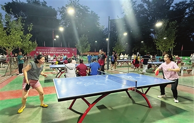 辽宁鞍山永乐公园社区群众积极参与乒乓球比赛。