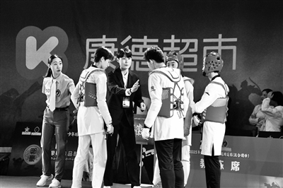 跆拳道混合团体是一个新颖的项目,赵伟在运动员时期并没有参加过这个项目的比赛。在本次全国青少年跆拳道精英赛(混合团体)比赛中,记者观察到比赛场上的教练员、裁判员和参赛选手一样不轻松,许多人的衣襟被汗水湿透。“这个比赛需要教练员注意力非常集中,有些队伍有两个教练,一个负责举旗子,一个负责说战术,我一个人要举旗子又要说战术,有些分身乏术。”赵伟说,作为一名刚转型成为教练的退役运动员,她需要学习的还有很多,对于此次比赛队伍的表现,她非常满意,“带着享受赛场的心态就好,我告诉他们输赢不重要,只需要把水平打出来,感受赛场,享受比赛就可以。”
