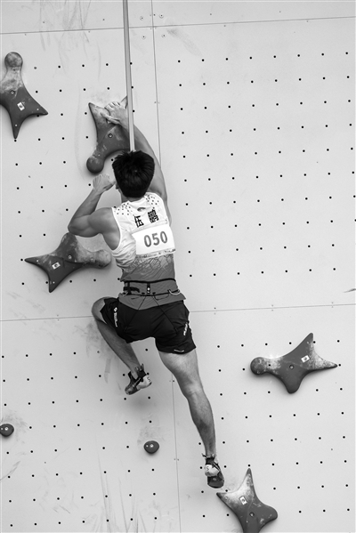 有趣的是,每一轮对决结束后,伍鹏总会露出笑容。赛后他坦言,“我基本上都在失误,每一次失误后还能赢,我觉得运气挺好,有点幸运,所以每次下来都会笑。这也是攀岩速度赛这个项目有意思的地方吧。”