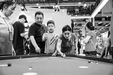 许多家庭驻足在各展台前积极咨询、亲身体验。潘女士一家上午九点就来到了这里,直到下午三点仍在现场,他们为中华传统体育项目展演的精湛技艺喝彩,被丰富的体育用品、多元的运动项目吸引,将周末时光打造成了一场充满活力的“体育约会”。“非常开心能见到这么多的冠军,现场的体育展演、体育用品、各种运动项目简直太丰富了,还要带孩子再去体验体验。”潘女士说。
