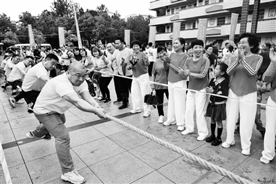 近日,2025年湖北省“百镇千村”全民健身系列赛事在广水市杨寨镇开幕。图为村民参加拔河比赛。