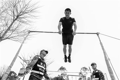 近日,武警广西总队梧州支队训练场上热火朝天,官兵们以新《军事体育训练大纲》为指引,聚焦实战化体能需求,展开高强度、多课目的强化训练。训练场上,官兵们围绕单杠卷身上、负重冲刺等课目展开训练,现场气氛紧张而热烈。图为官兵进行单杠卷身上训练。