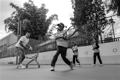 清晨,云南野象网球俱乐部的训练场上响起清脆的击球声。几个皮肤黝黑的孩子在晨光中奔跑挥拍,汗水顺着脸颊滚落,在朝阳下闪闪发光。这些小球员来自云南临沧的佤族村寨,从小穿梭于高山密林中、跋涉于崎岖山路的经历,练就了他们出众的体能和敏捷的反应。他们大多家境困难,云南野象网球俱乐部便承担全部生活与学习费用。孩子们每天清晨六点半训练,平均挥拍超过七千次。大山生活赋予他们强健体魄,更磨砺出坚韧意志。图为小球员在训练场进行网球训练。