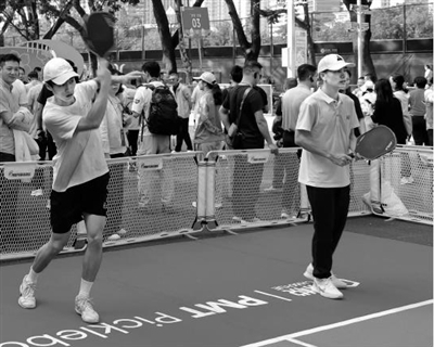 始建于20世纪80年代的天河体育中心,如今依旧是广州市民心目中的“城市客厅”和“体育殿堂”。近四十年来,天河体育中心举办了近4000场赛事活动,入场锻炼人次约1.8亿。活动当天,一场名为“爱户外 享自然 活力共迎十五运”的社区运动会正在这里举行。当地市民刘玉辉带着妻子和三个孩子一起报名参加了现代五项大众障碍跑活动。他说:“放下手机,全家参与体育,是最大的享受和收获。”除此之外,社区运动会还有乒乓球、羽毛球、跳绳等传统项目,陆地冰壶等冰雪项目,无人机足球等科技项目以及飞盘、匹克球等新兴项目。不少“双先”代表饶有兴趣地走上匹克球场挥拍打了起来。天津市体育局副局长吴卫凤走下球场,笑着竖起了大拇指,她说:“以全运会带动健身热,最终受益的是老百姓。”